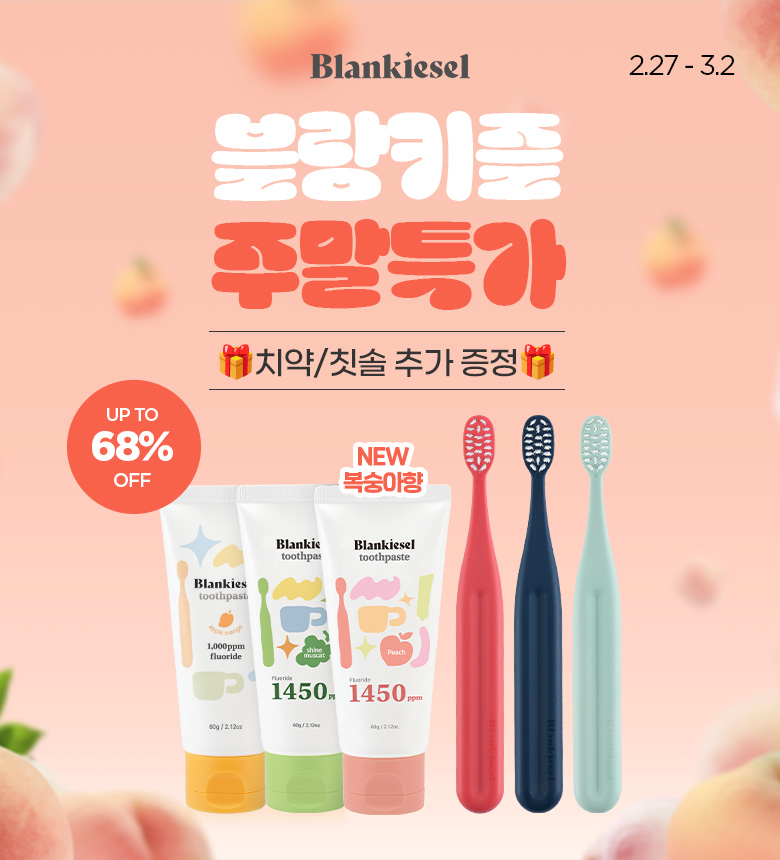 키즈치약 초등학생 어린이 유아 1450ppm 고불소 복숭아향 2단계 1+1 60g