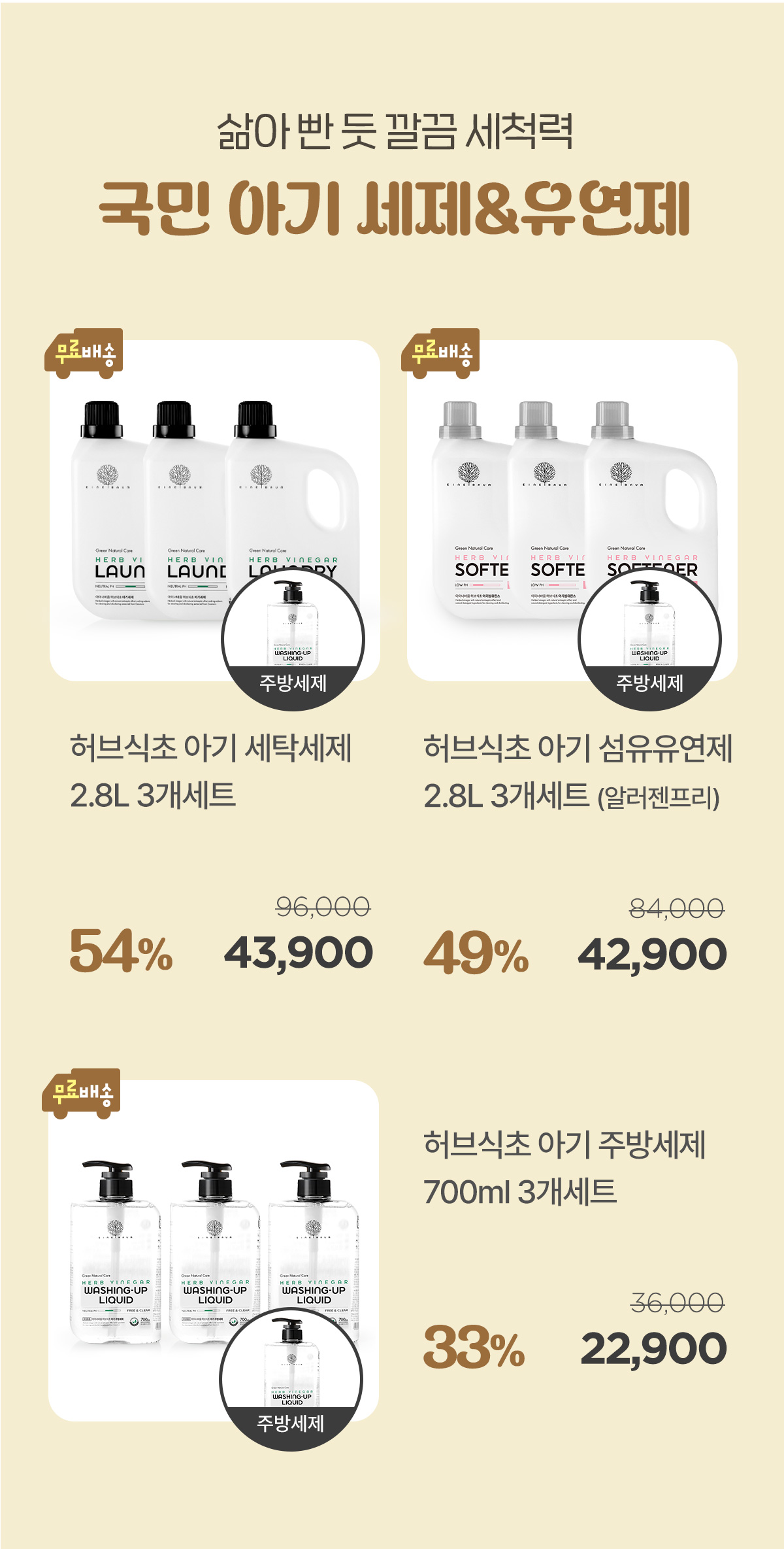 유아 아기 신생아 허브식초 세탁세제 2.8L 3개세트