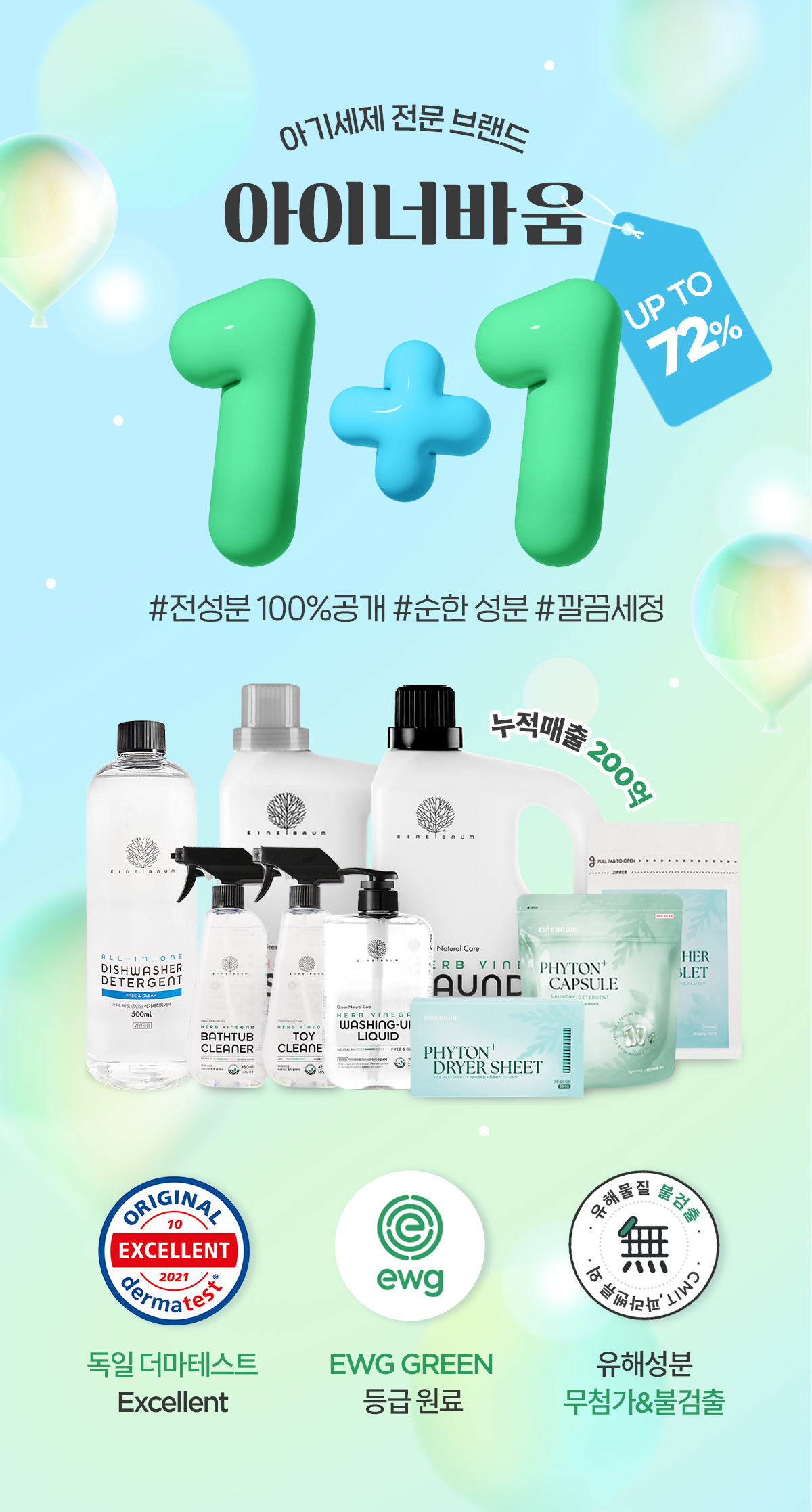 예민한 피부도 걱정없는1+1 세제/유연제/클리너 특가